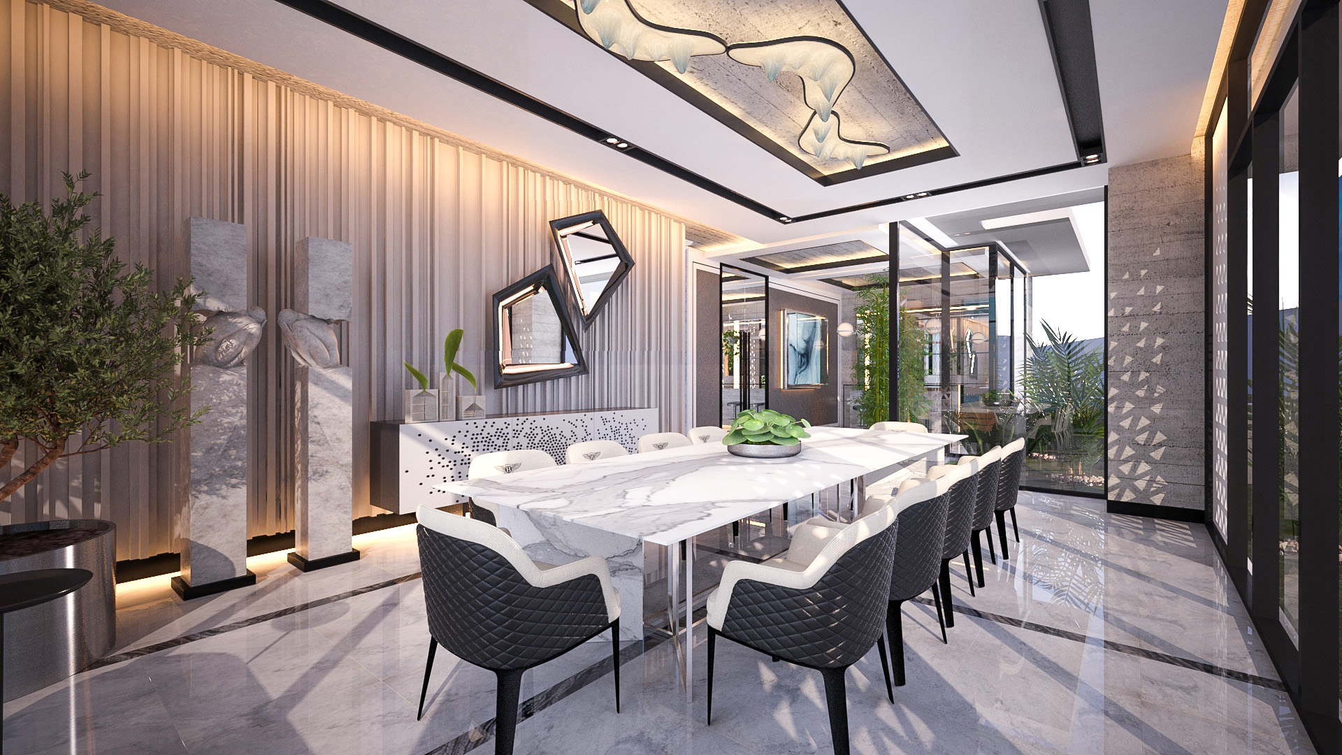Sürdürülebilir yaşamın enerjisini veren 4 element; toprak, ateş, hava ve su, villanın ana konseptini oluşturmaktadır. Toprak, refahı, istikrarı ve güvenilirliği temsil ederken; villada kullanılan mermer döşemeler, toprak tonlu bitişler, yeşil renkler toprağı simgelemektedir. Ateş, dönüşümsel ve arındırıcı güçlere atıfta bulunurken; enerjiyi, yaratıcılığı, tutkuyu, bağımsızlığı, özgürlüğü, gücü ve dinamizmi sembolize etmektedir. Hava, yaşam nefesi ve gücün akışı ile bağlantılıdır. Su, iyileşme, arınma, akıcılık, saflık, durağanlık, güç ve değişimin sembolü olup; büyük ebatlı akvaryum, su öğeleri içeren sanat eserleri ve manzarayı kucaklayan geniş pencereleri su elementini temsil etmektedir.